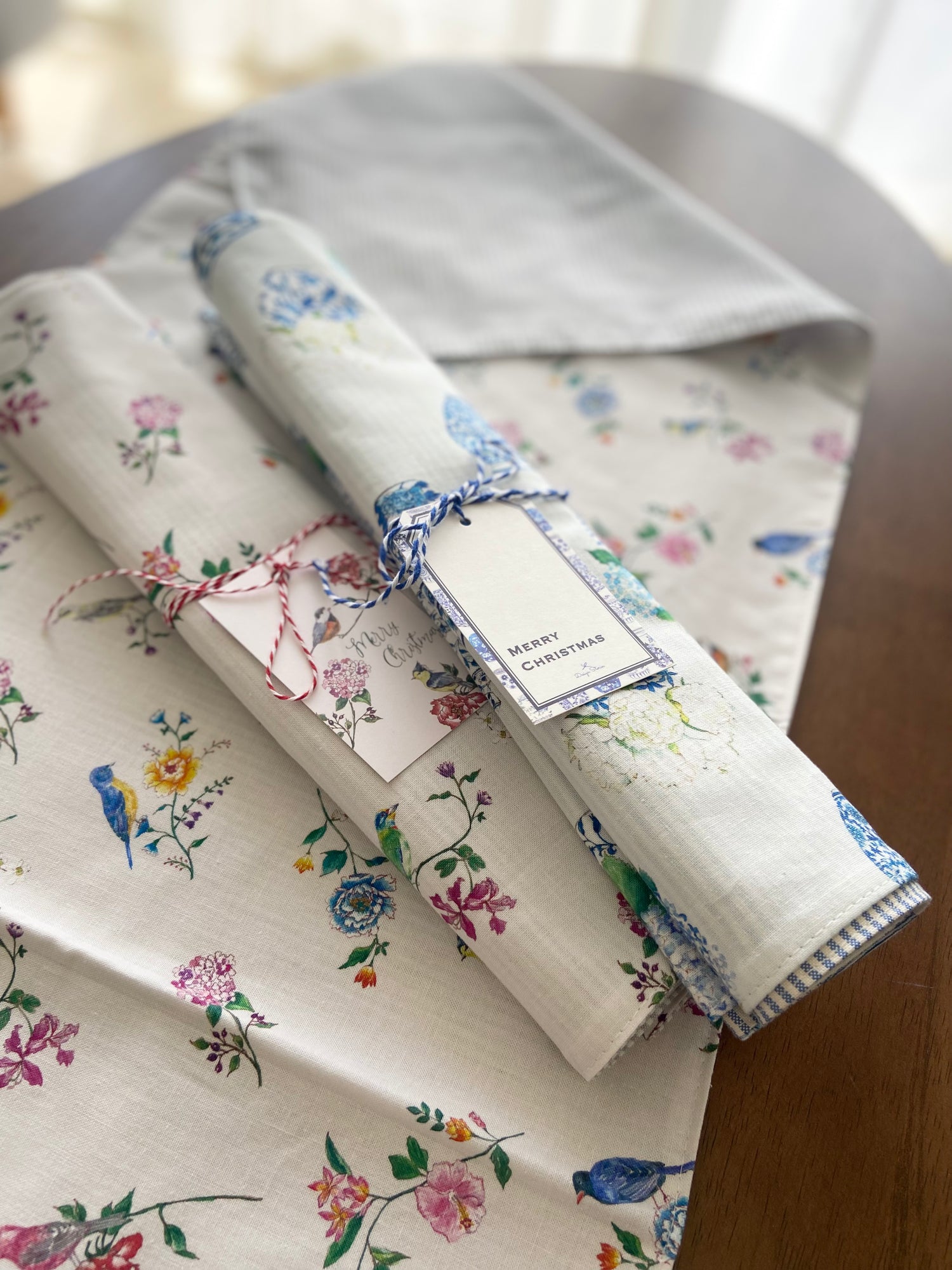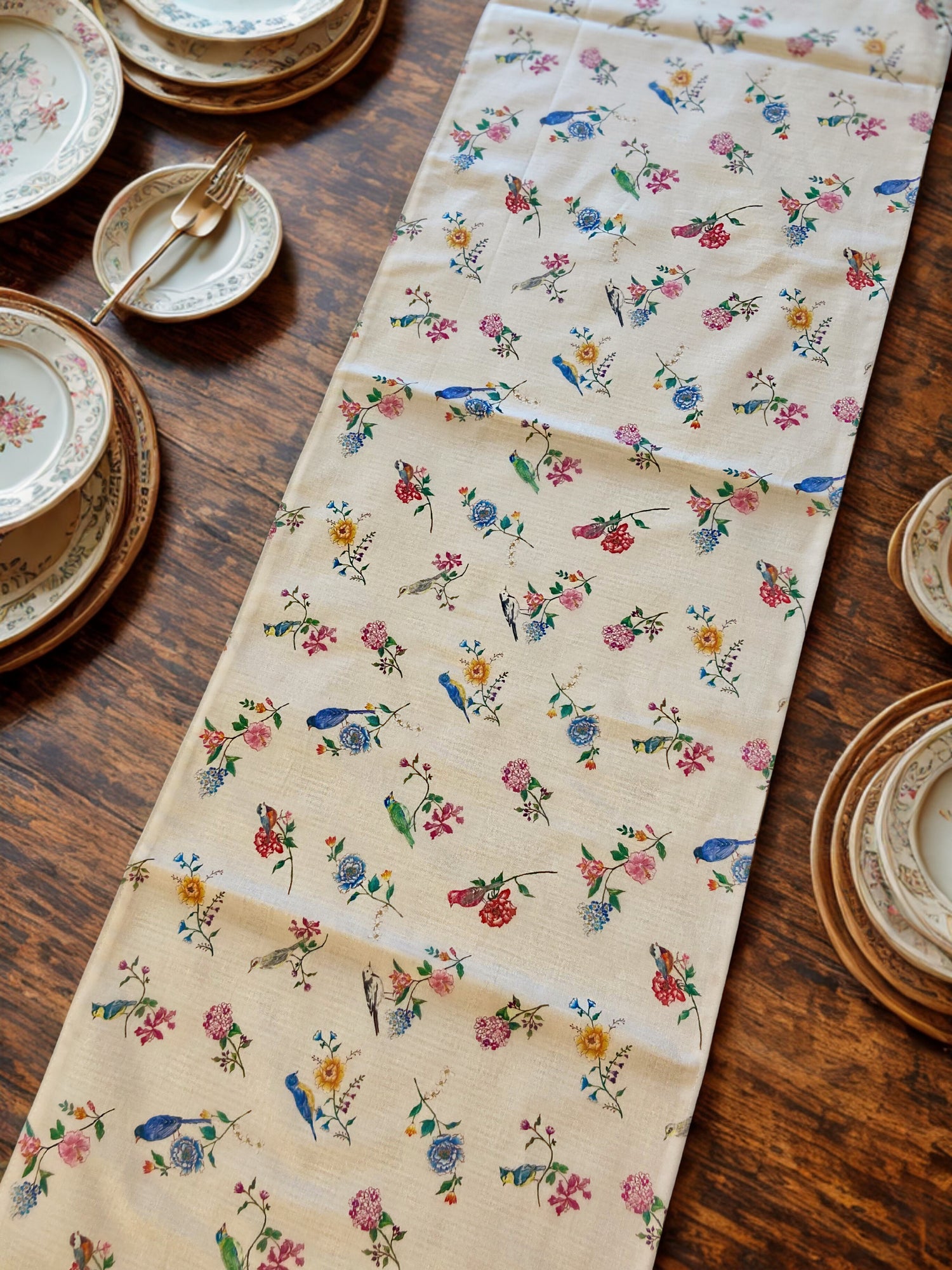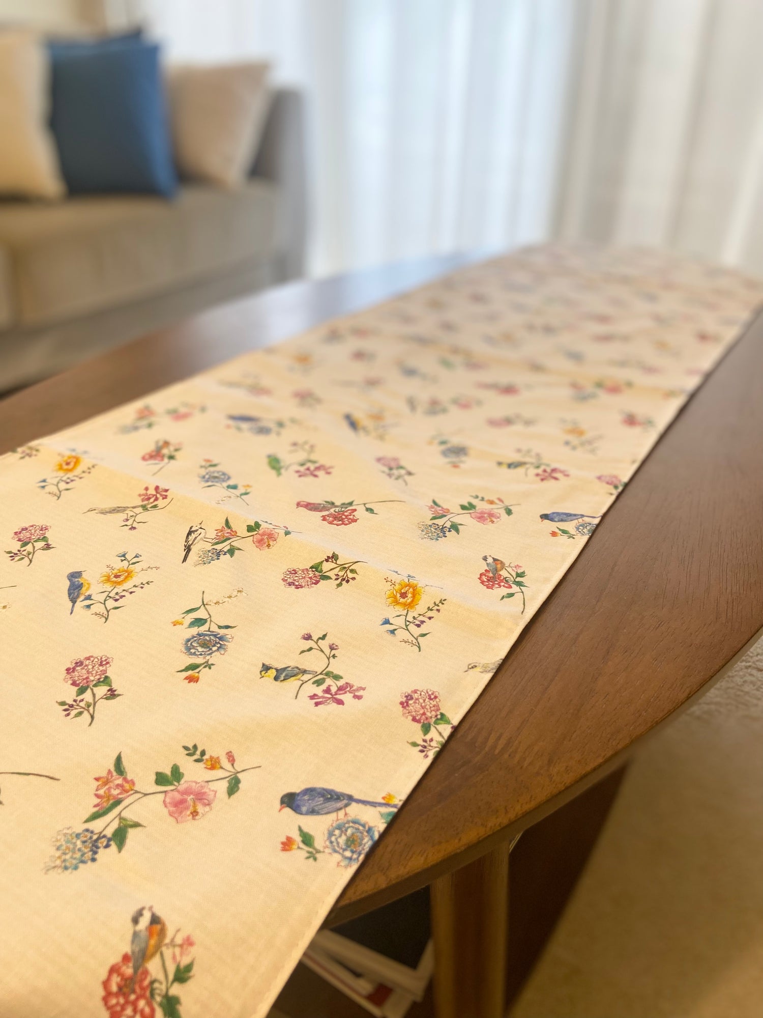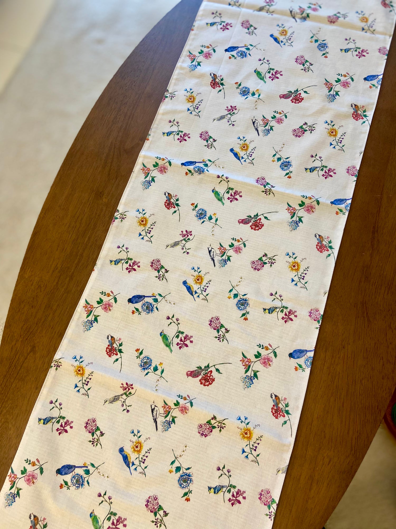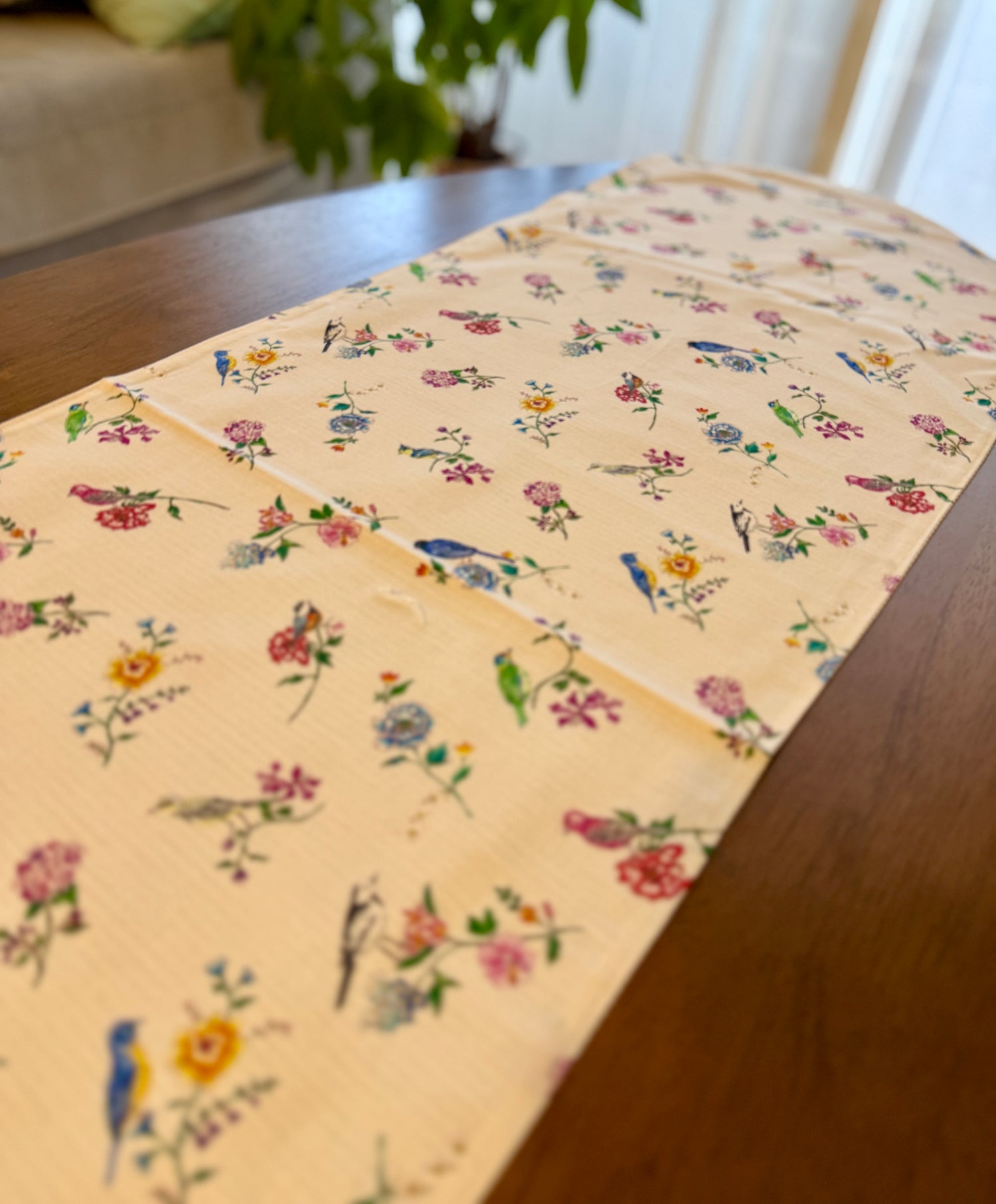 鳥と花のテーブルランナー