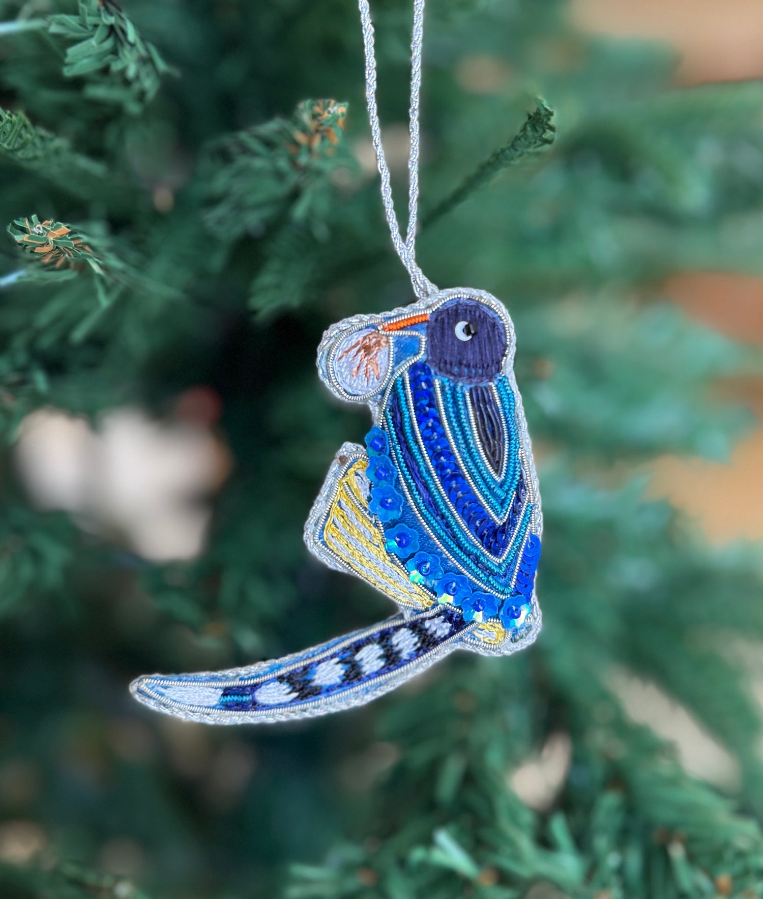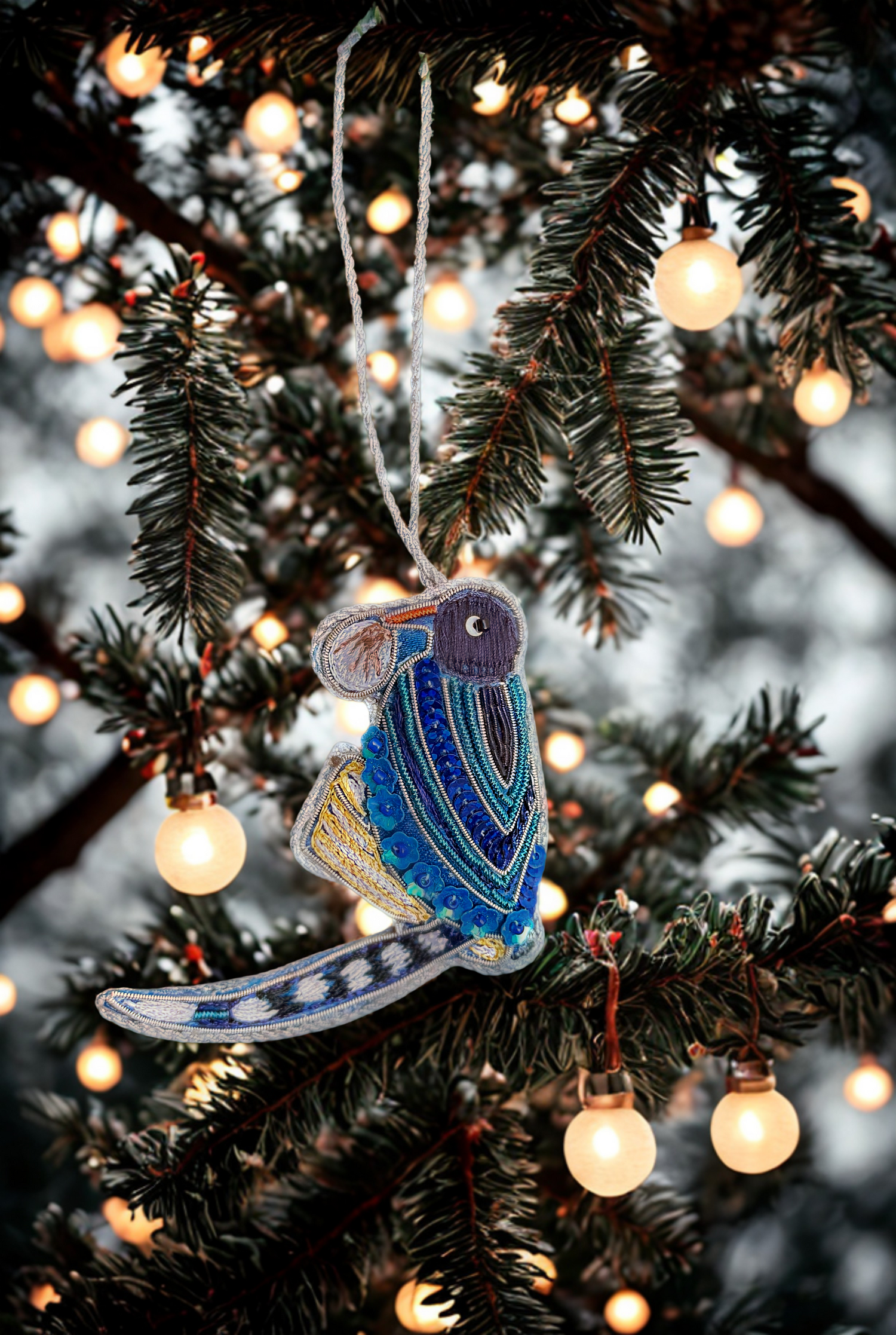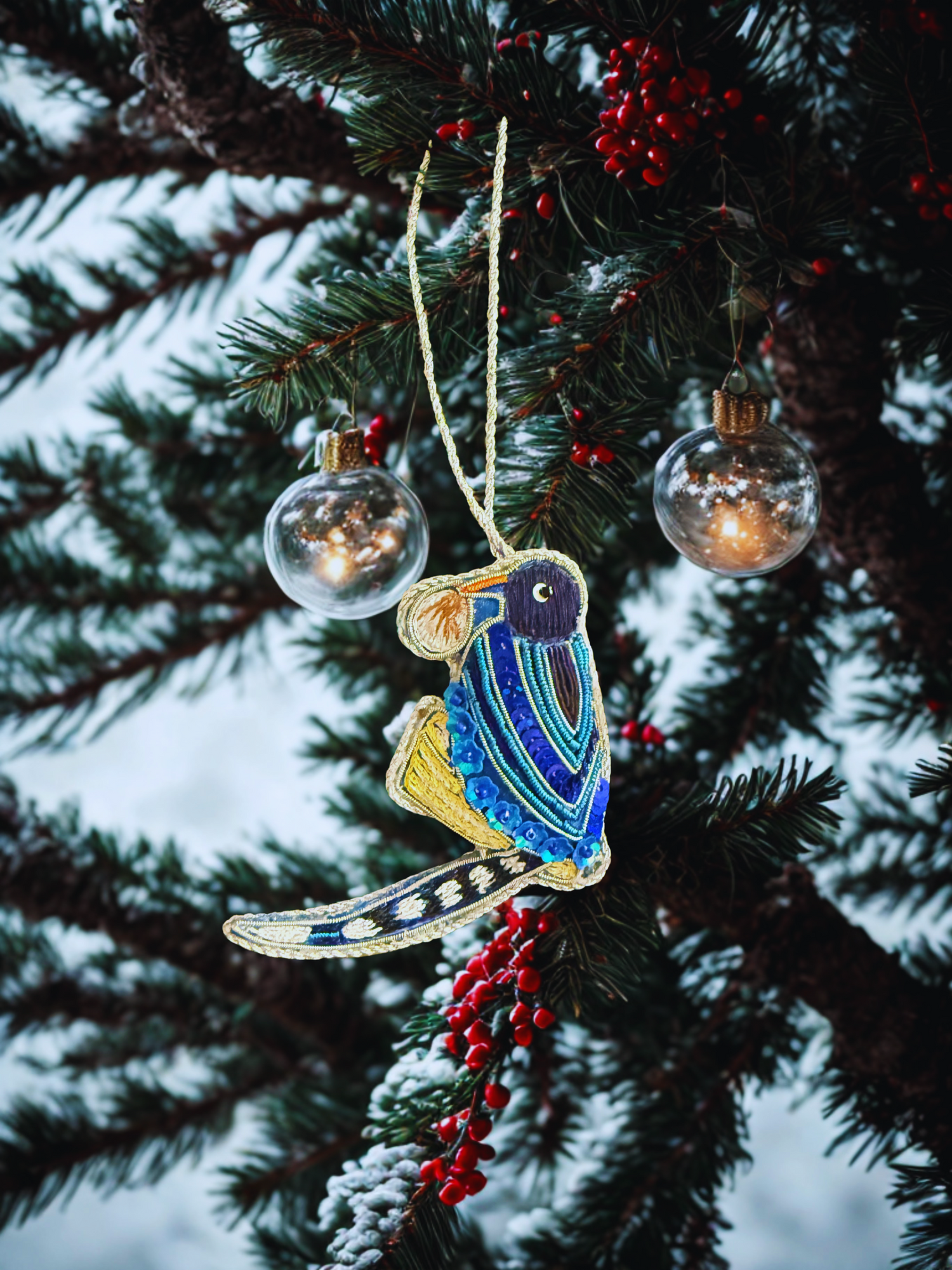 オーナメントは藍色のメッシュ袋にお入れします。袋の中には、